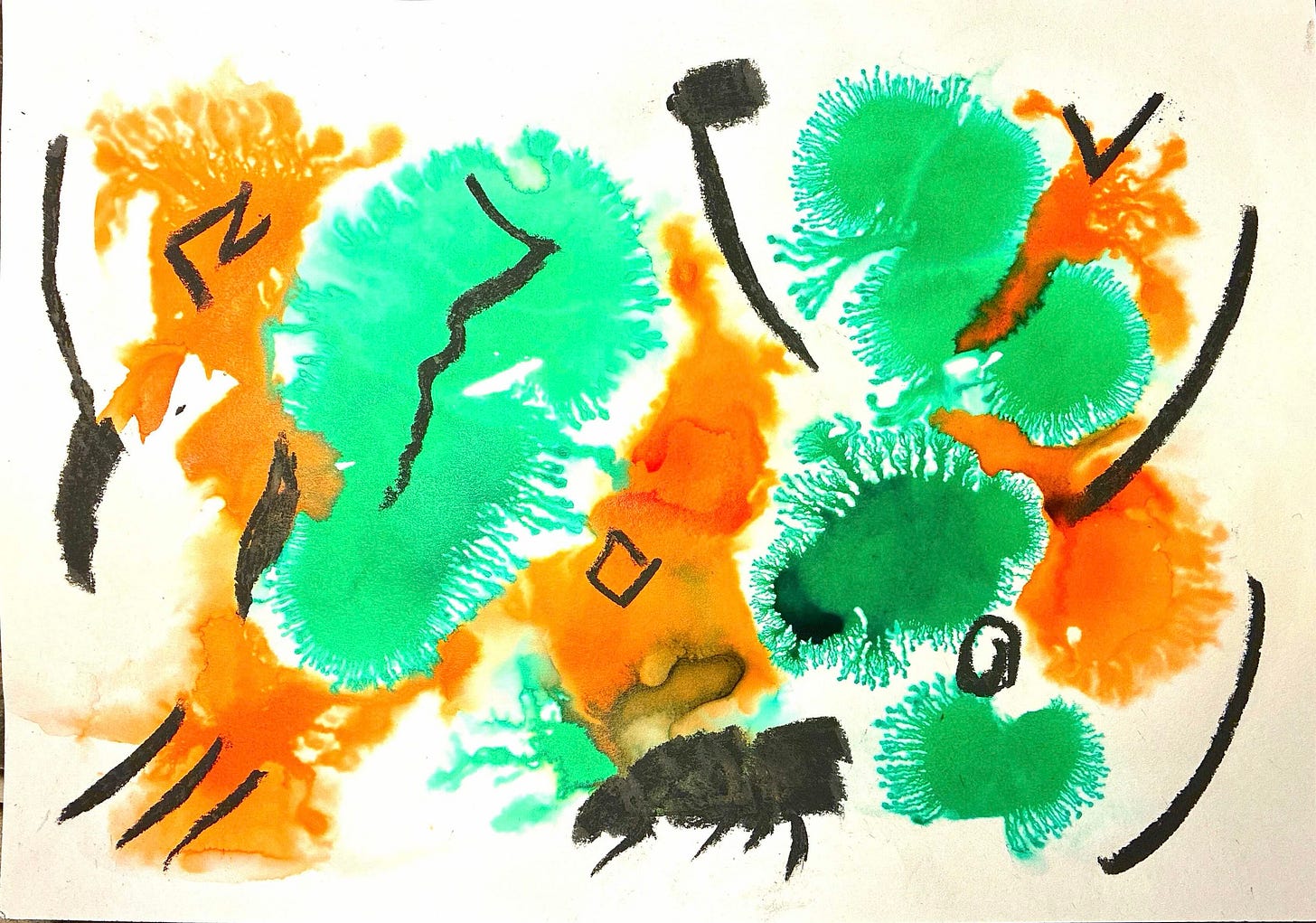 I can end up feeling very lost in my painting. Yesterday, feeling so, I made two ink abstracts - one pure ink, one with some charcoal. They’re different to what I often do - not least because they are colourful, while often my abstracts are muted or pure black.